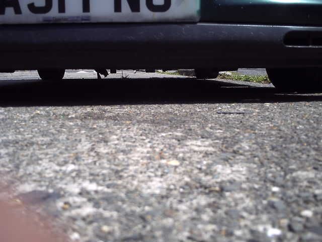 havent got any pics of it when it was at its lowest..... but i did leave bits of my undertray on northantsben's drive still had space left on the coillies then aswell lol. iirc it was 30mm from floor to sill.