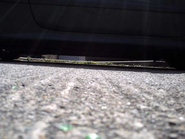 anyone wanna hazard a guess at how low it was when I took this..? Sitting on 14" steelies and more weight in the back end of a car than a black girls bootie.