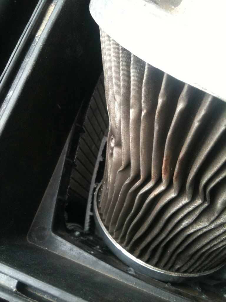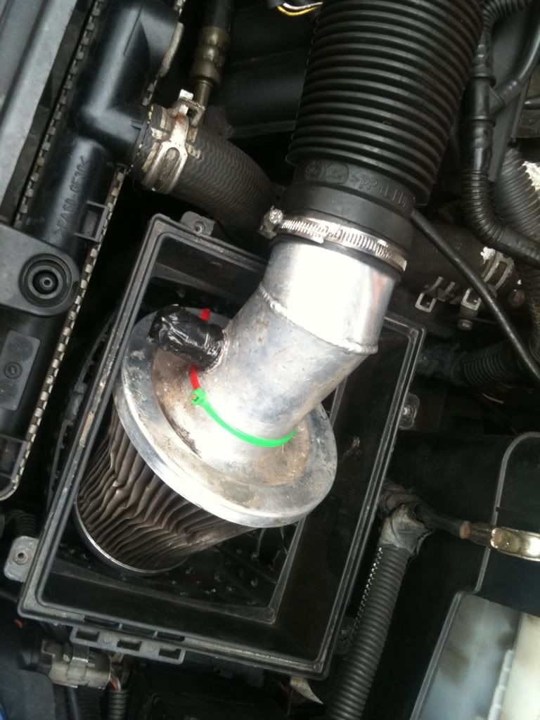 duct tape, cable tie, drill hole on the air box, collapsed filter XD