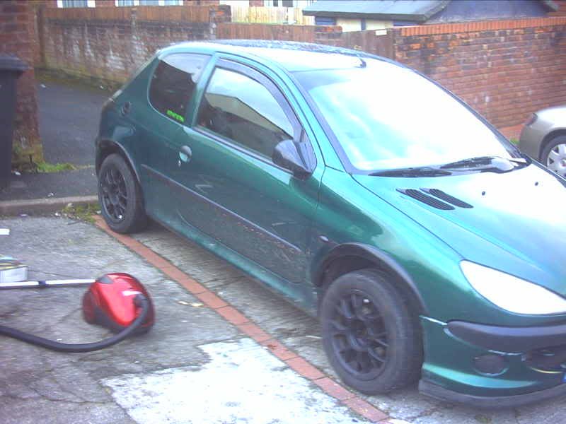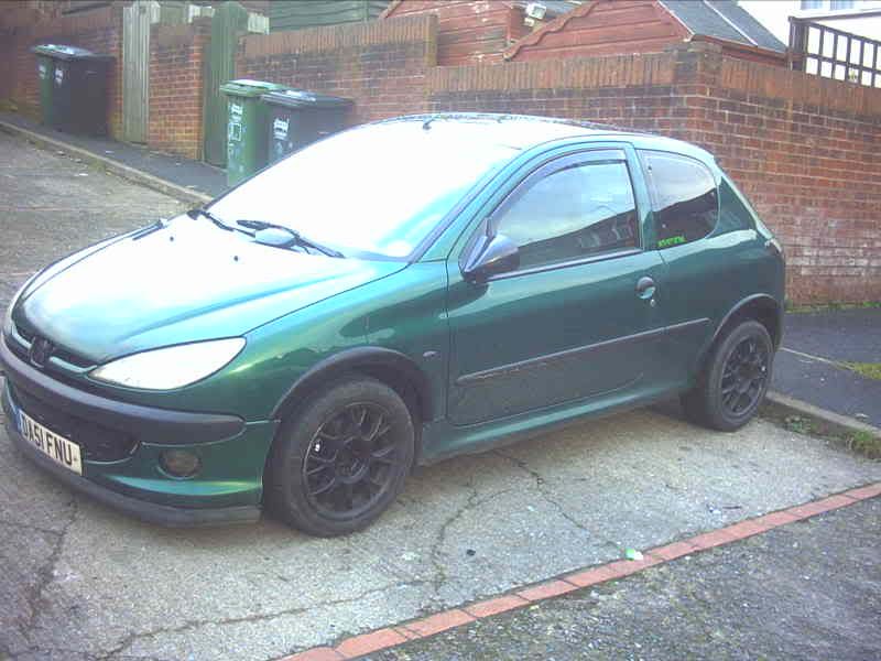 | 1998 Green/Black peugeot 206 GLX, black/green theme, gloss black bumpers, side strips, spoiler, eyebrows and ph2 boot strip cupra r splitter, black angels, smoothed bonnet, smooth badgless grill, euro plates, black fogs.  | |