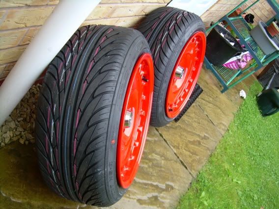 In other news I've got the Mono's looking a bit more respectable, they had a fair amount of chips in the paint round the lips, and with them being black the silver chips were quite noticeable, so I've touched them up with some satin black paint and they look much better now. I've also added some red rim tape to 'make them my own' and put a bit of a twist on them, and I'm pretty pleased with the results, no pics as yet I'm afraid though! It kinda highlights the tyre stretch though, I'm hoping once they're on you'll see red wheel lips poking out when looking at the back of the car, but yet you can hardly see the tape when looking at the wheels face on.