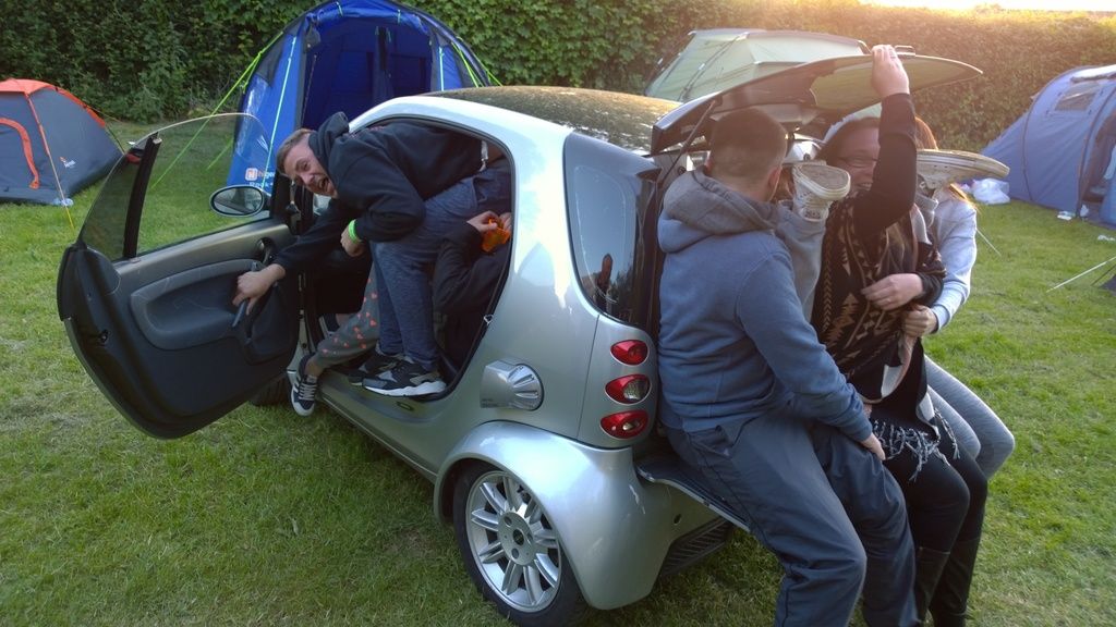 How many peeps fitted in the smart car ?